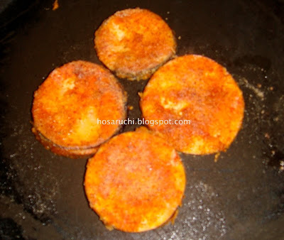 Here am giving the quick and easy recipe for Brinjal fry. Unlike the traditional Brinajl Bonda/bajji, this one need not be deep fried in the oil. goes very well as a side dish with rice and rasam.